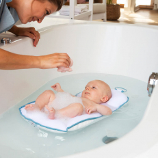 Sikker og praktisk flydeseng til babyer op til 8 kg. Den bløde og bøjelige flydemadras former sig omkring babyen, og skaber beskyttende omgivelser for en sikker og behagelig badetid. Flydepuden har også en fordybning i midten, som hjælper med at holde babyens ansigt over vandet. Med sit innovative design frigør den dine hænder, samtidig med at den holder din baby stabil og komfortabel.