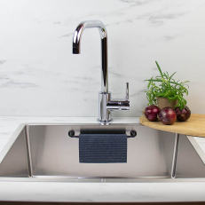 Du behøver ingen værktøj for at montere holderen. Rengør overfladen med den medfølgende klud, fastgør pladerne med 3M-tape, vent 30 minutter – og klik holderen på plads. Monteringen går hurtigt og efterlader ingen mærker.Fleksibel placering for både opvaskeklude og håndklæder