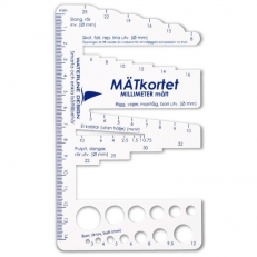 Målekortet er specielt udviklet til at måle detaljer på både, men passer selvfølgelig også på kysten og kan være en god hjælper for gør-det-selv-typen. Kortet er baseret på millimeter, med omregning til tommer på bagsiden og angiver både indvendige og udvendige mål.