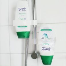Med shampooholderne kan du fastgøre dine flasker til brusestangen, så de hænger i en passende højde. Der kan fastgøres flere holdere til brusestangen og der er ikke behov for skruer - der klikkes hurtigt på med et enkelt tryk. Shampooholderen passer til de fleste typer shampooflasker, 150-500 ml, med mulighed for at opbevare flasken på begge led.