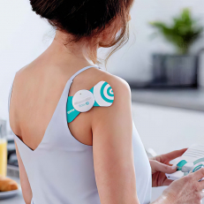 Praktisk TENS maskine til smertelindring i skuldre, arme, ben og ryg. Enheden er batteridrevet og designet til at blive båret diskret under tøjet med 12 forskellige intensitetsniveauer at vælge imellem.